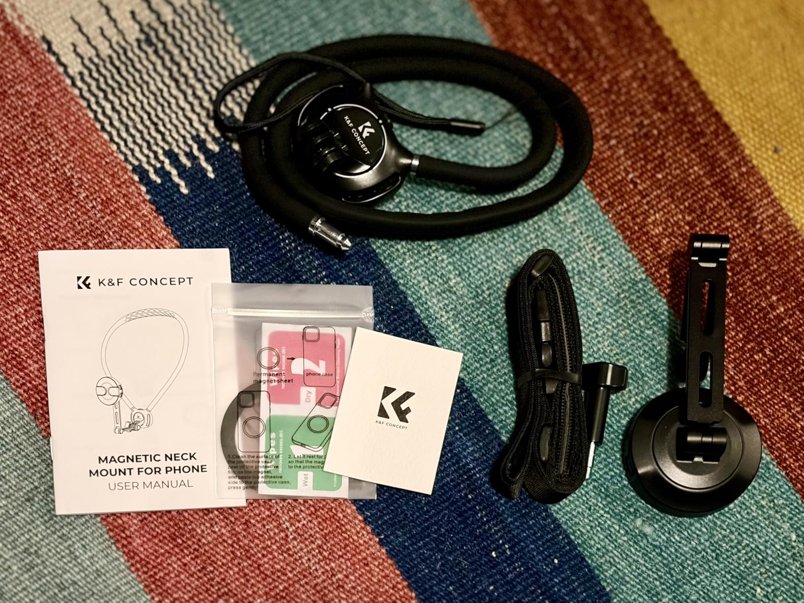 I’d seen these neck-style phone holders used by Twitch streamers before and was curious how well they actually work. The construction is solid. The neck piece is a flexible metal core wrapped in soft silicone, so it feels comfortable and stable. There’s a threaded band that holds the loop securely, and the neck loop detaches with a push-button clip similar to a small padlock mechanism.Comfort wise, it’s surprisingly good. It’s not only useful for hands-free video calls or live streaming but also works well for POV filming — especially when you want to record what your hands are doing, such as drawing, building, cycling, skateboarding, anything like that.One thing to note is that in selfie mode your face ends up quite close to the camera, which isn’t the most flattering angle. Realistically, the arm would have to be longer to fix that, so maybe a telescopic extension would have made sense here.The phone mount itself is MagSafe, and they include a magnetic ring if your phone or case doesn’t support MagSafe. There are mounts for other camera types as well, but those are sold separately.Overall, it’s well made with good materials. The price feels roughly in line with other accessories like this, though I still think it’s slightly expensive for what it is. But in terms of performance for hands-free selfie or POV filming, it works very effectively.