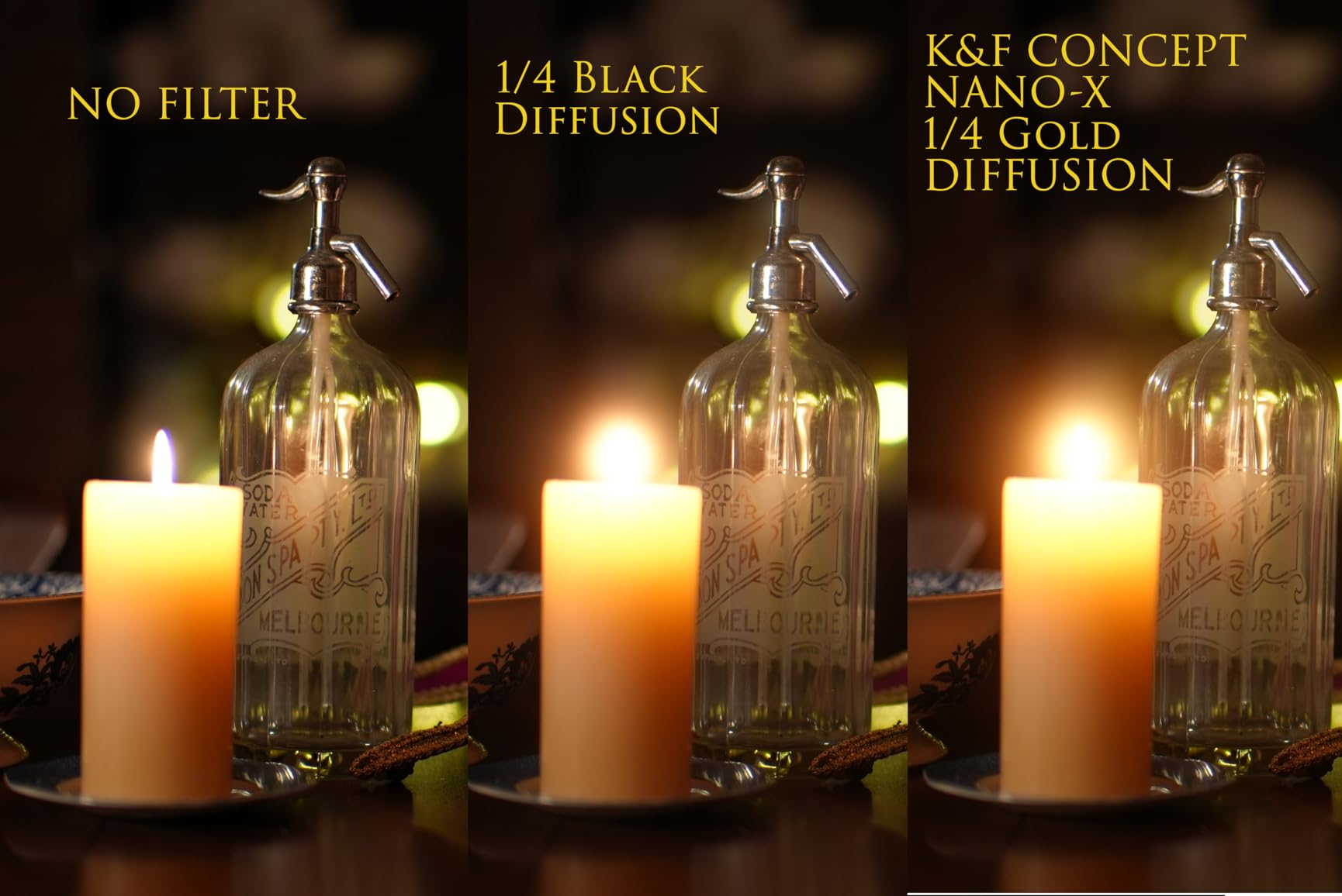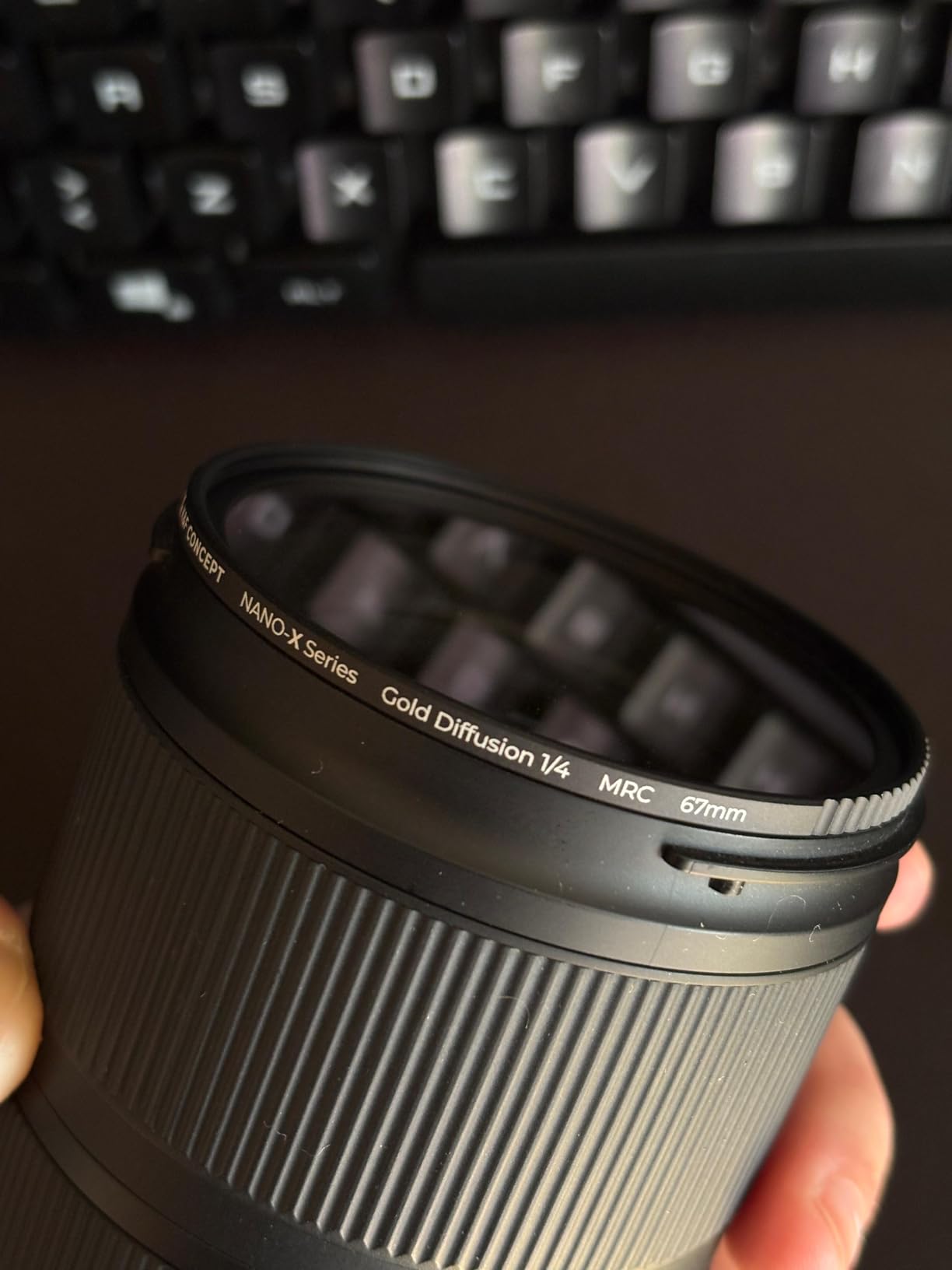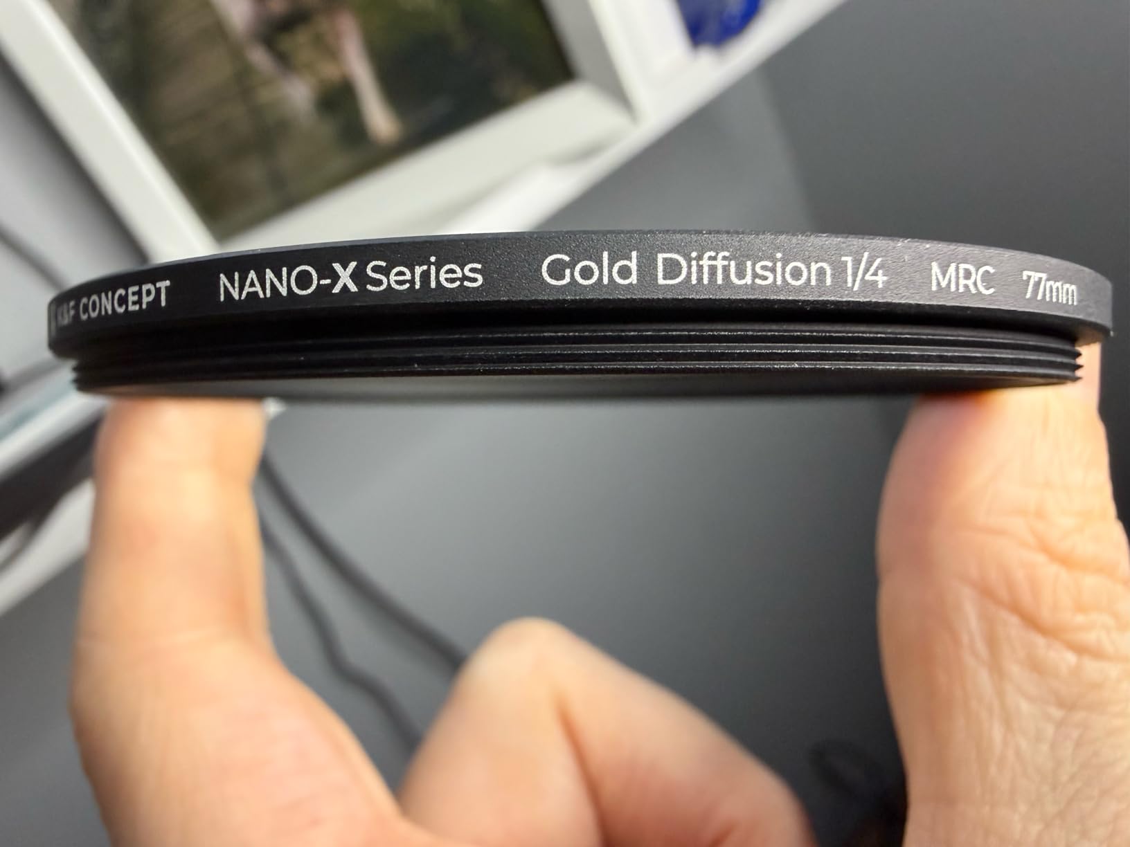 In practical use for both photo and video, this filter helps create a softer, more cinematic aesthetic straight out of the camera. It’s particularly useful when shooting digital cameras that can sometimes look too clinically sharp. If you already use diffusion filters like Black Mist or Pro-Mist, this gold diffusion version offers a slightly warmer, more stylized alternative while keeping the same soft highlight bloom effect.