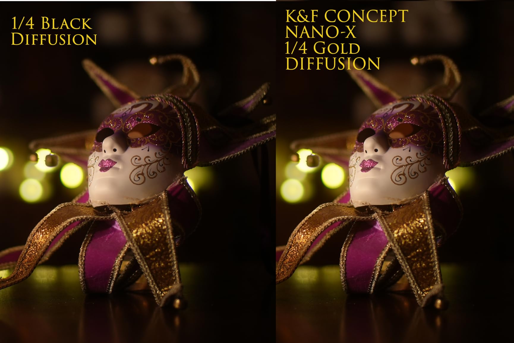 The Gold Shimmer Diffusion 1 Filter is a member of K&F Concept’s pro quality Nano-Xcel filter series. The lenses in the series boast a 0.2% ultra-low reflectivity 28 layer nanometer coating and aviation grade aluminum construction. The “1” in the designation means that this particular filter offers the strongest diffusion (i.e. 1/1) relative to other diffusion filters in the same series. Although K&F Concept includes "Shimmer" in the name, there is no shimmer effect; it is just there to aid key word searches.