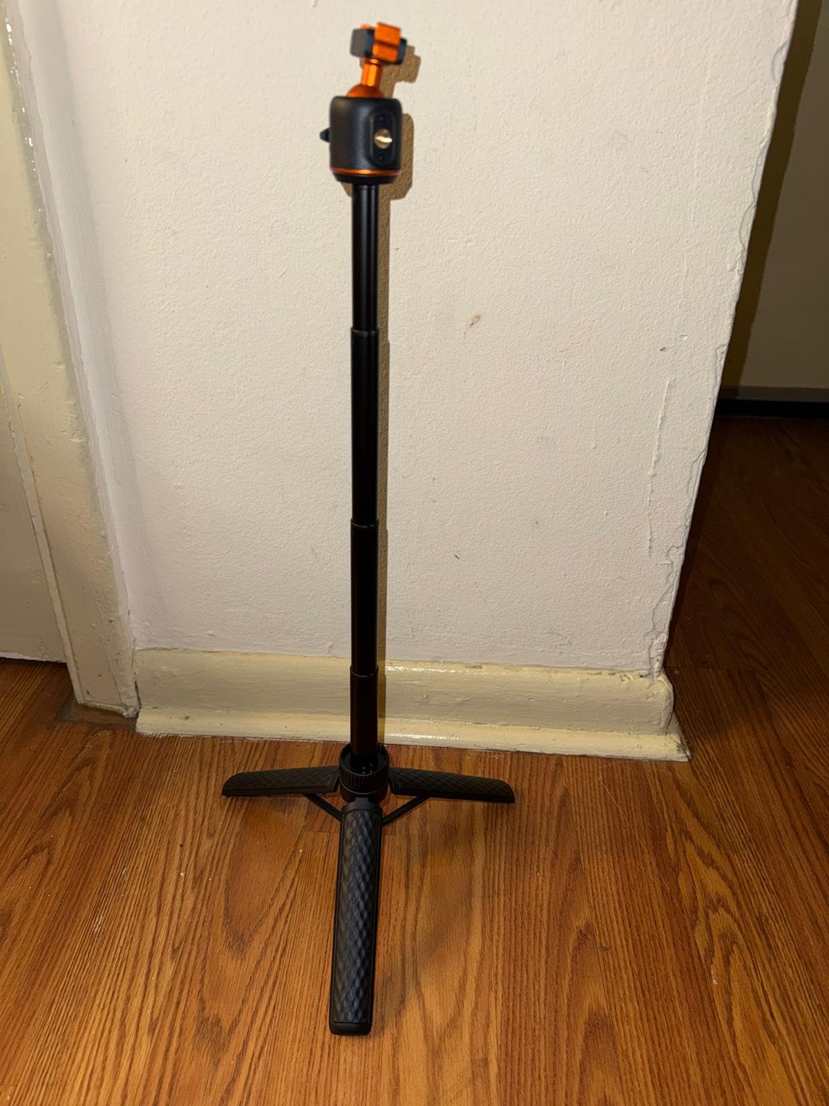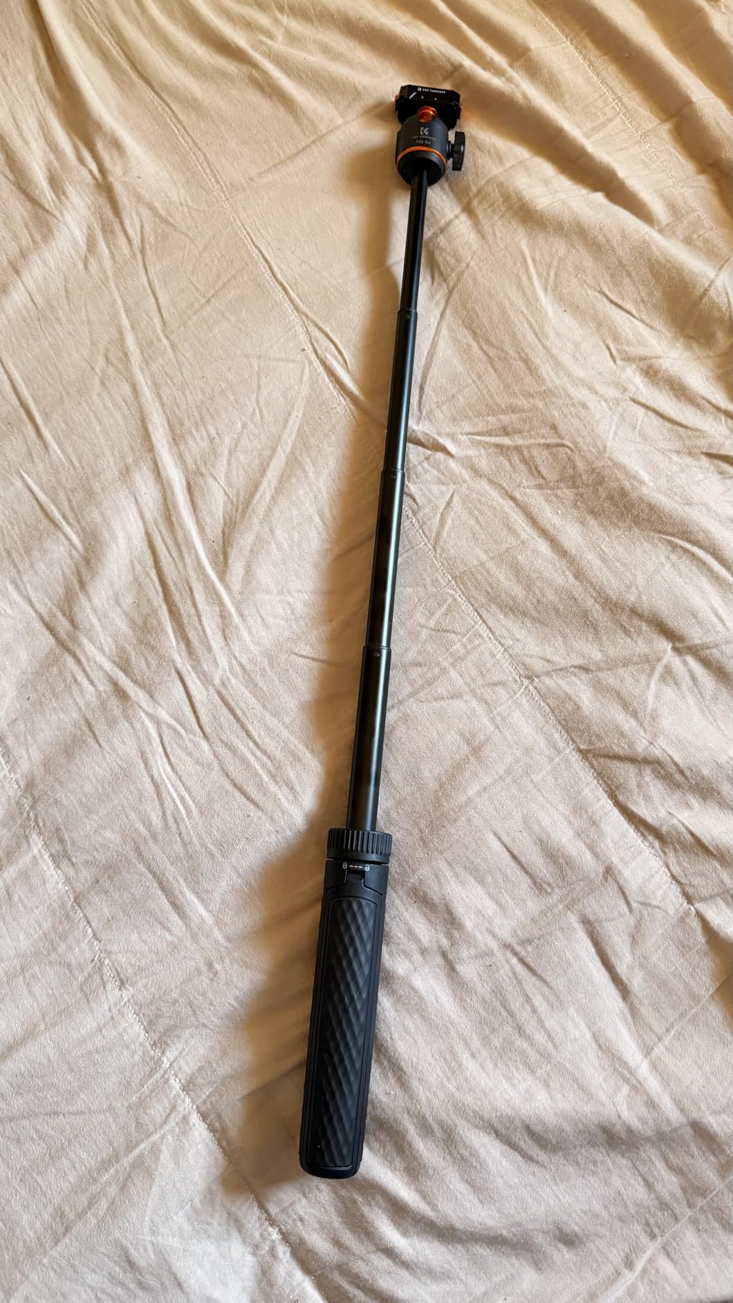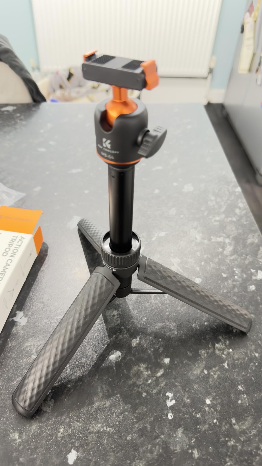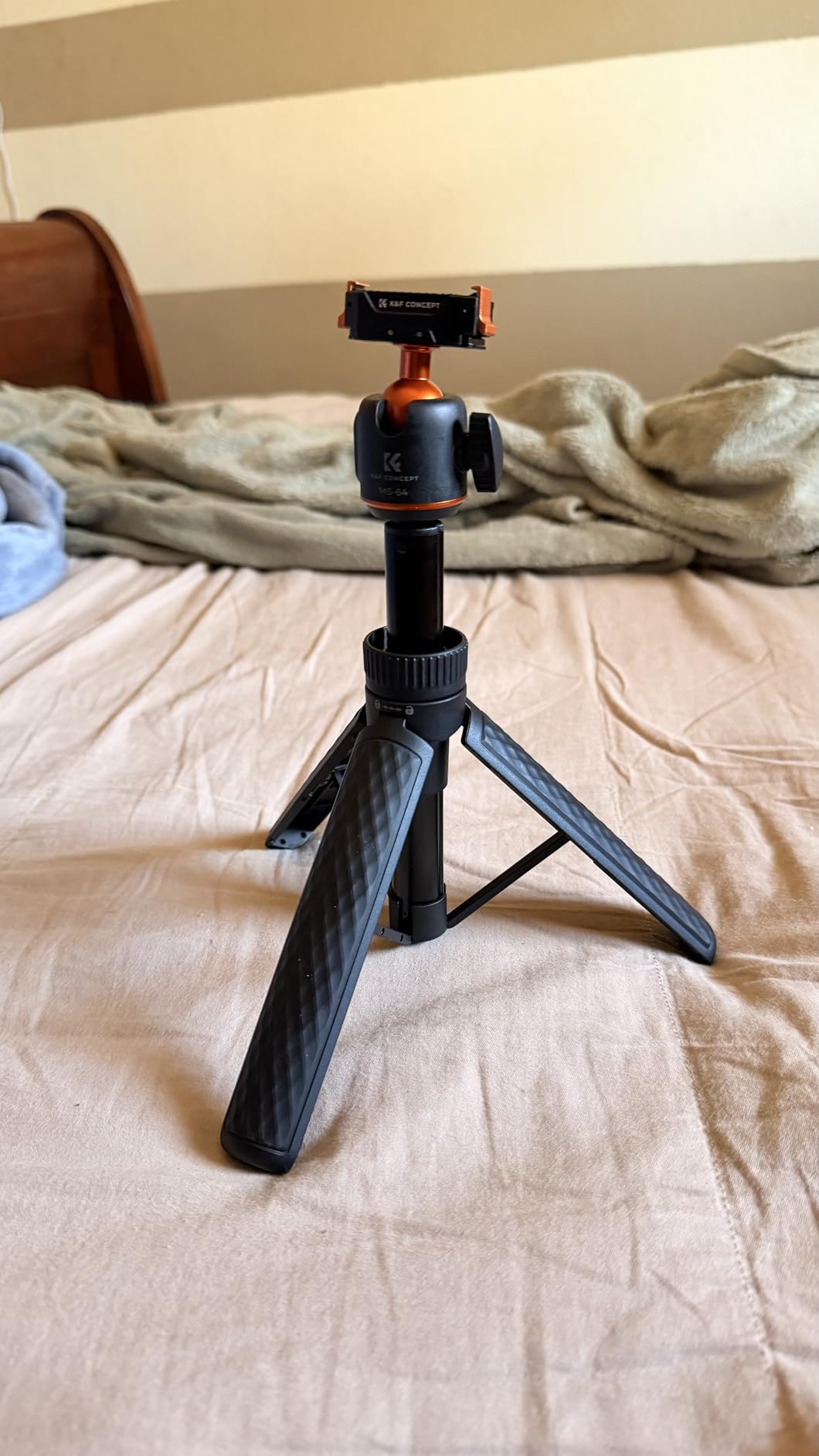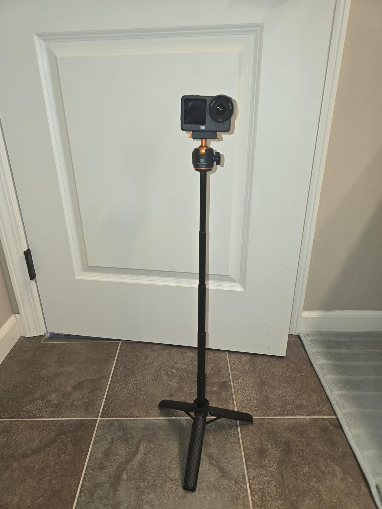 I've been using the K&F CONCEPT 65cm/25.6" Mini Tripod Selfie Stick almost daily for the last 2 weeks. I will say that on a level surface, even outdoors, the tripod is stable, even with part of the selfie stick extended (providing the wind isn't too gusty!) and can be placed to capture images with the Action 6 very effectively. (the DJI MIMO App can be used to remotely fire the camera for photos or video) The ball head (in K&F Concept corporate Orange) has some friction when loosened, and holds firmly when tightened.The grip on the tripod is lightly textured, helping to provide a good grip, even when using it as a selfie stick, the lightweight construction, coupled with the very light Action 6, means that 'vlogging' with the combination is not particularly tiring for the arm! The effectiveness of the Quick Release bracket (push it on firmly until both sides click into place) also inspires confidence that the camera will not tumble to the ground if jogged. (the same confidence is apparent when using the tripod selfie stick to do low-level video, it holds secure even when the camera is upside down)When collapsed the tripod is easily small enough to carry in a pocket, along with the camera, and still have room for a hand in colder weather... There is a locking collar above the fold-out legs that can lock the tripod closed or open, unfolding the legs when unlocked requires a small amount of force to pass the click-lock, when closing, there is a gentle click when the legs have completely closed. As mentioned earlier, the QR plate locks in place securely, aided by the magnet built in to it.At the time of writing the tripod is £25, which I consider reasonably inexpensive for a photographic accessory, particularly noting that K&F Concept typically produce good quality products at a wallet-friendly price, and this feels good quality.