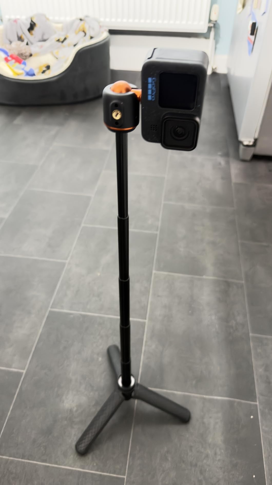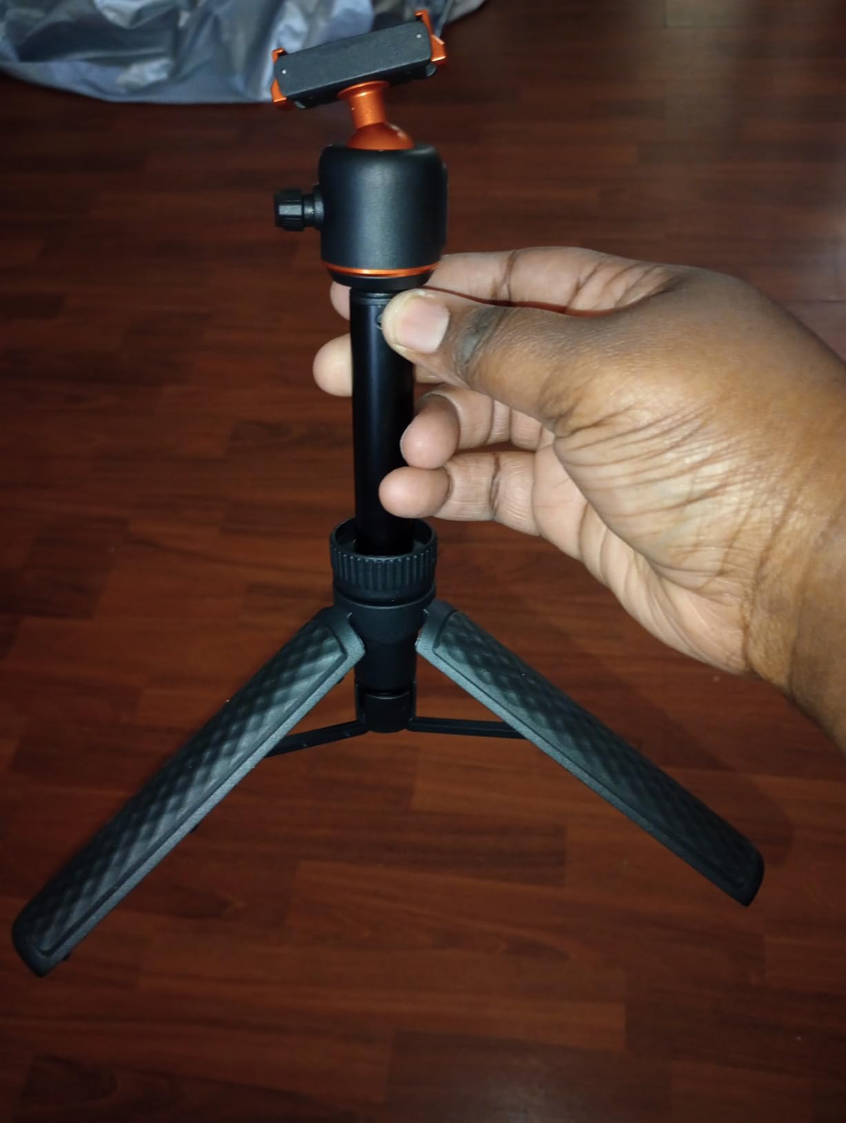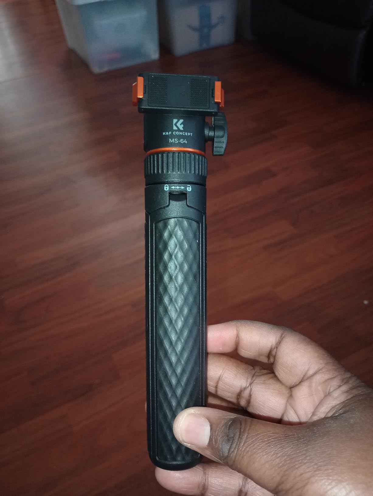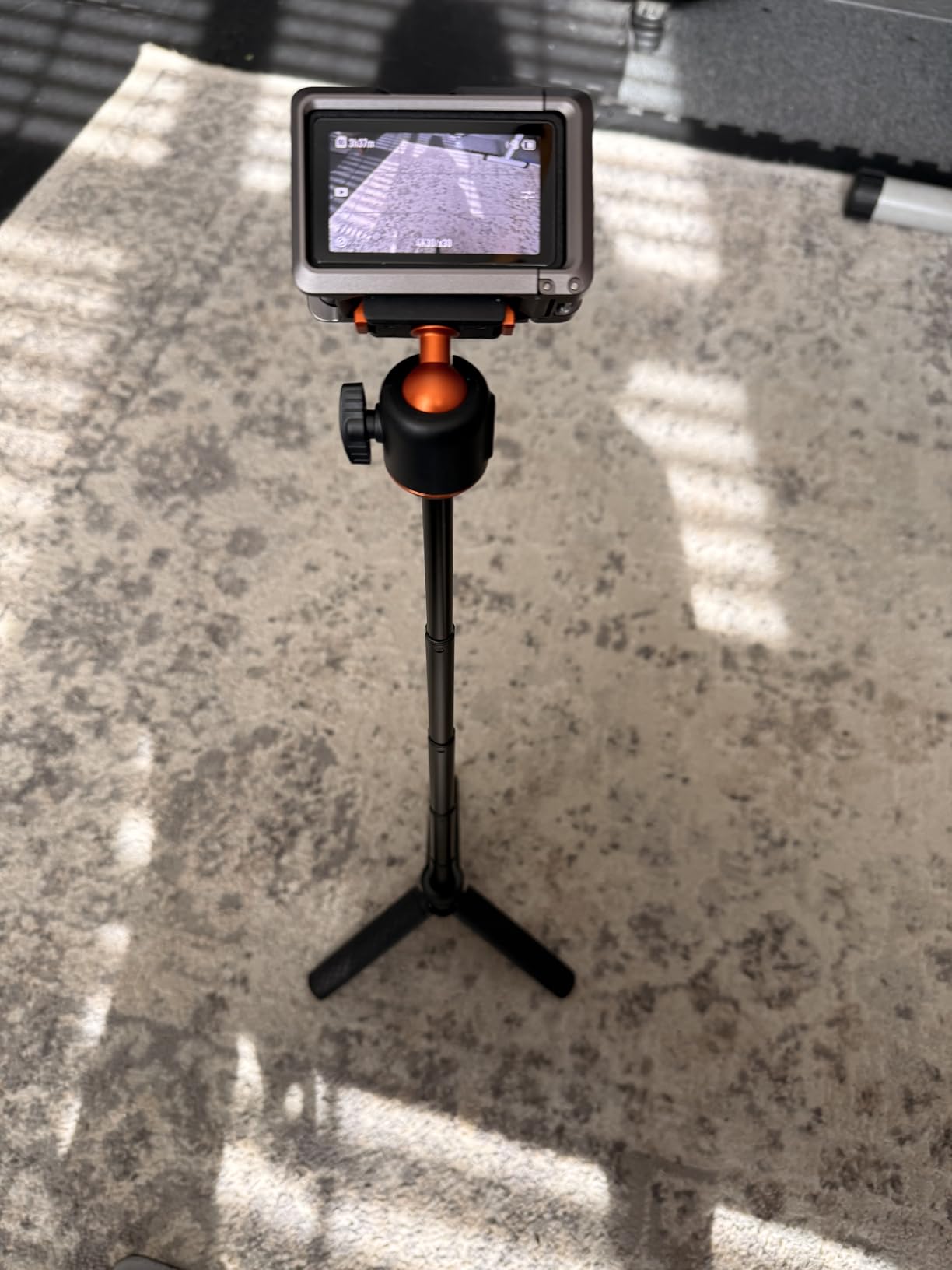 I've been using the K&F CONCEPT 65cm/25.6" Mini Tripod Selfie Stick almost daily for the last 2 weeks. I will say that on a level surface, even outdoors, the tripod is stable, even with part of the selfie stick extended (providing the wind isn't too gusty!) and can be placed to capture images with the Action 6 very effectively. (the DJI MIMO App can be used to remotely fire the camera for photos or video) The ball head (in K&F Concept corporate Orange) has some friction when loosened, and holds firmly when tightened.The grip on the tripod is lightly textured, helping to provide a good grip, even when using it as a selfie stick, the lightweight construction, coupled with the very light Action 6, means that 'vlogging' with the combination is not particularly tiring for the arm! The effectiveness of the Quick Release bracket (push it on firmly until both sides click into place) also inspires confidence that the camera will not tumble to the ground if jogged. (the same confidence is apparent when using the tripod selfie stick to do low-level video, it holds secure even when the camera is upside down)When collapsed the tripod is easily small enough to carry in a pocket, along with the camera, and still have room for a hand in colder weather... There is a locking collar above the fold-out legs that can lock the tripod closed or open, unfolding the legs when unlocked requires a small amount of force to pass the click-lock, when closing, there is a gentle click when the legs have completely closed. As mentioned earlier, the QR plate locks in place securely, aided by the magnet built in to it.At the time of writing the tripod is £25, which I consider reasonably inexpensive for a photographic accessory, particularly noting that K&F Concept typically produce good quality products at a wallet-friendly price, and this feels good quality.
