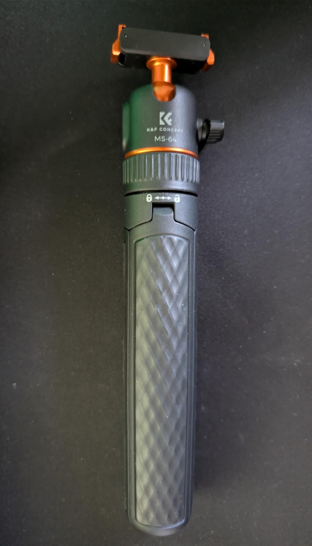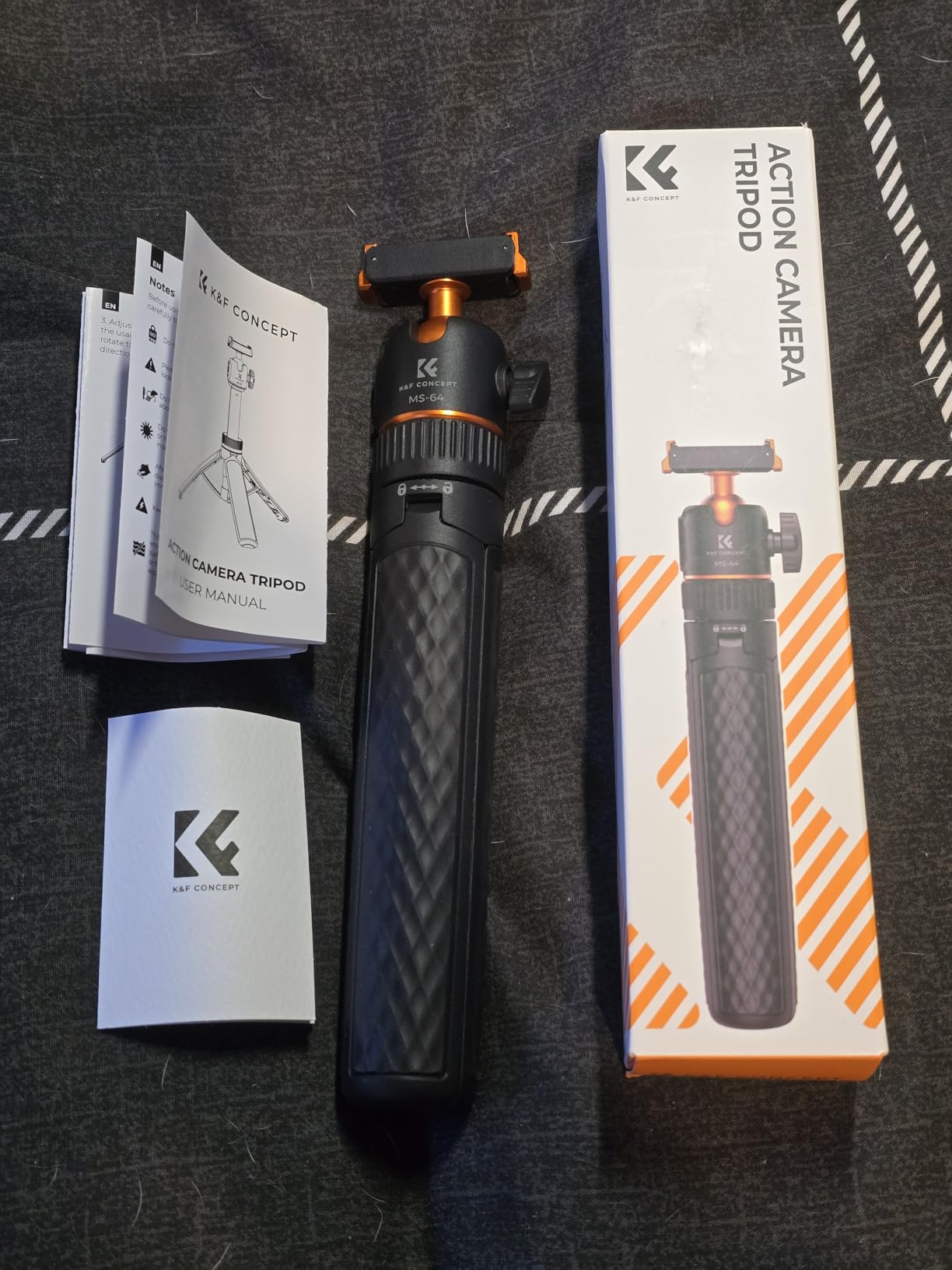 Another great product form K&F Concept.I needed something small, lightweight with a long reach that can also stand on it's own while using my Osmo Action 6.This ticks all those boxes.It has a long telescopic reach with tripod style legs that spread out, which also has a lock on so it does not collapse when in use, which is a great feature. The handle has rubber strips down which is perfect for the best comfort and stable grip. The tripod itself is fairly sturdy. It has a DJI Osmo quick release plate on the end but this can actually unscrew which reveals a 14" 20 screw that you can attach anything else with the same screw hole such as another action camera mount etc. The ball head base has a thumb screw which tightens the ball head quite tight and has another 14" 20 screw hold for other attachments like a light or microphone etc.For this price, this is a fantastic action camera tripod that is lightweight and sturdy which is small and compact to bring along on any trip.