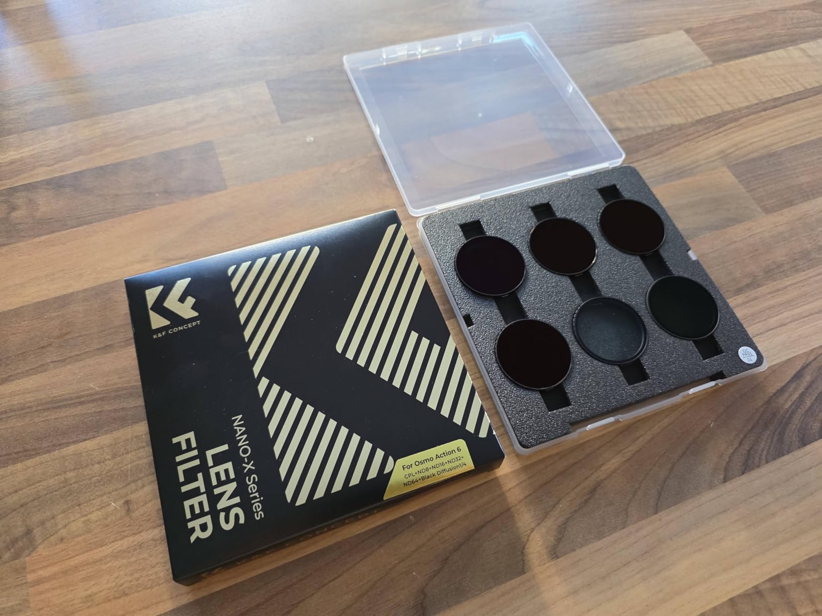 K&F concept are a really reputable brand and this will be one of many ND filter sets I have purchased and received from them. This specific listing for the Osmo Action 6 with a CPL+ND8+ND16+ND32+ND64+Black Mist 1/4 is something that's blown me away.Each filter is expertly made and feels highly durable and tough. They fit the Osmo Action 6 perfectly. I have no comments on K&F Concept's packaging, although it does look nice so yes it's suitable to be gifted to an Osmo Action 6 owner.K&F Concept, and these items specifically, deliver excellent performance. There's none of that X-shadow that is a mainstay in cheap terrible filters. Rather these filters are made to a high standard clearly have very good quality control, and testament to that quality is the rather high price. However you can be sure that in purchasing these filters you won't have to buy another set for the lifetime of the use of your camera given that you treat them right.Currently the filter set is on offer for £48.32. That works out at just over £8 per filter. Is this set for the use of hobbyists? Yeah. Is it for amateurs? No. Is it suitable for professionals? Absolutely.I think you need a certain level of skill to be able to effectively use the different grades of ND. But again if you want to take that jump and make that rather big investment, I don't think you would regret it. It will level up the outputs of your Osmo and allow you to achieve more cinema-quality footage that the camera is capable of but needs that helping hand in tough outdoor environments.