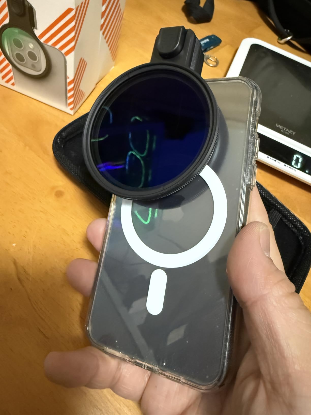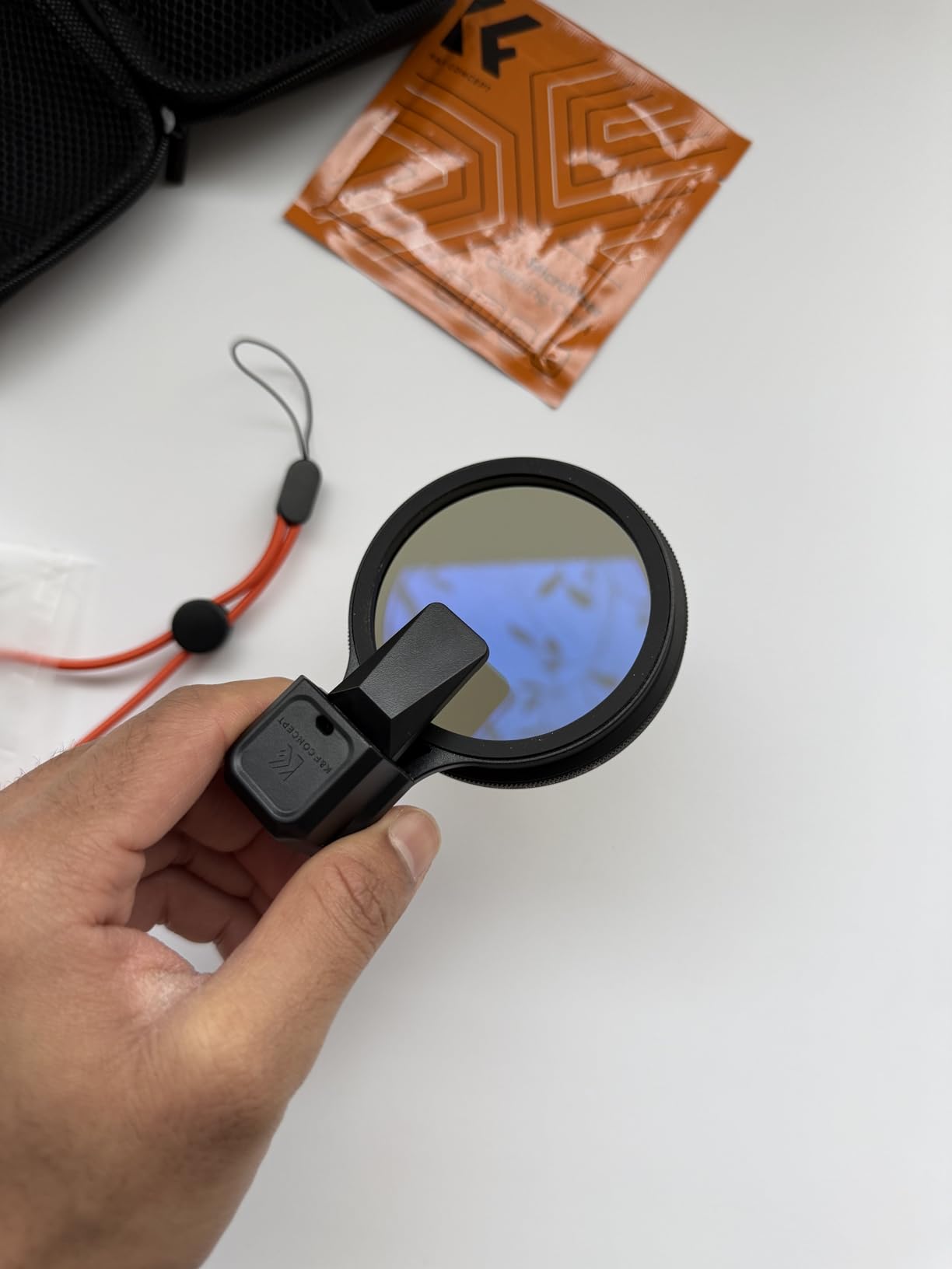 This filter can be used with both a clip and a camera lens, which is very convenient. I really appreciate this high level of versatility. Another nice point is that it comes with a sturdy case where you can keep everything you need together. The filters and clips themselves are of sufficient quality for everyday use, but there are separate products with better magnetic attachments for MagSafe compatible iPhones. Therefore, I will use a different magnetic adapter for the iPhone, and I plan to use this clip for Android. This is perfect for my use.
