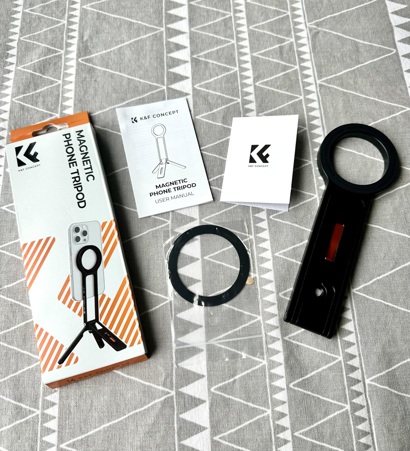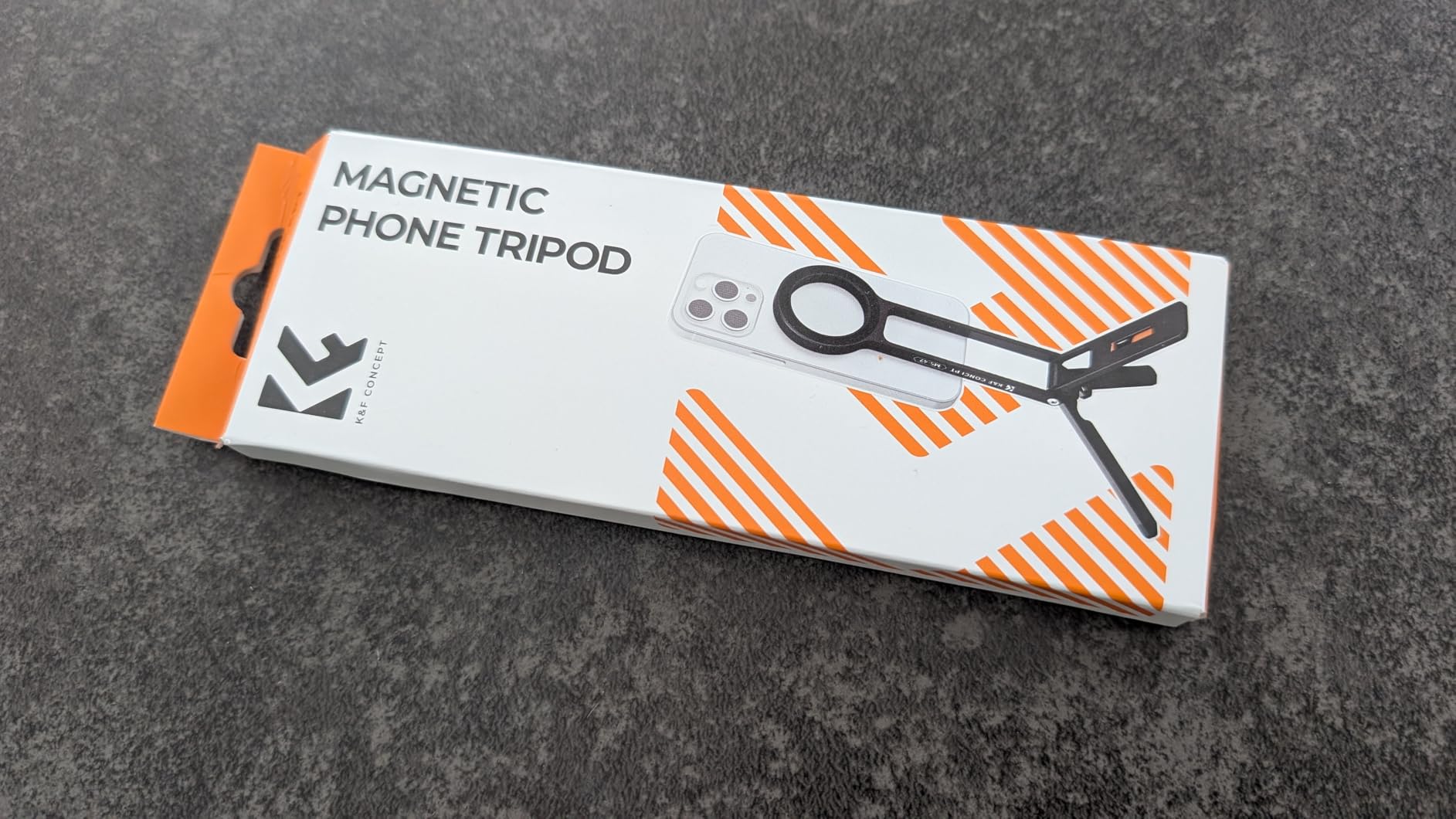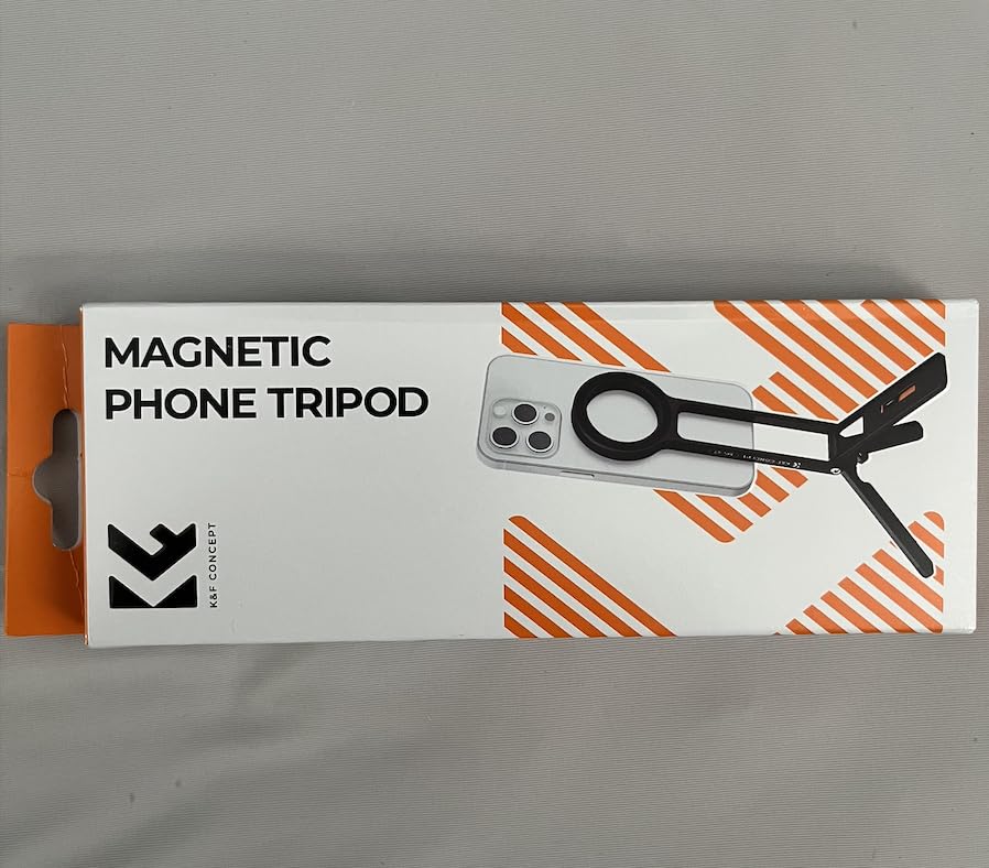 I couldn't be more excited about my new K&F Concept Phone Tripod! This comes nicely packaged, great if you're gifting. Included are the phone tri-pod, a QR code for warranty information, a self adhesive magnetic ring for phone cases lacking a magnetic ring and an instruction manual that is well illustrated and in several languages.Upon unboxing I was immediately impressed with the build quality of the all aluminum alloy unit. The stand is very light but also very strong and sturdy. The fold out legs have silicone pads to prevent slipping on smooth surfaces. Also of note is ¼ inch screw hole that enables use on a full size trip-pod if needed. The MagSafe magnet has PLENTY of strength and I'm at ease knowing my phone is secure. This is a quality portable stand that fits easily in my pocket and weighs in at just under 3 ½ ounces. I've included photos to illustrate size and uses. I look forward to utilizing this handy device for future vlogging, group selfies, landscape photography and more.