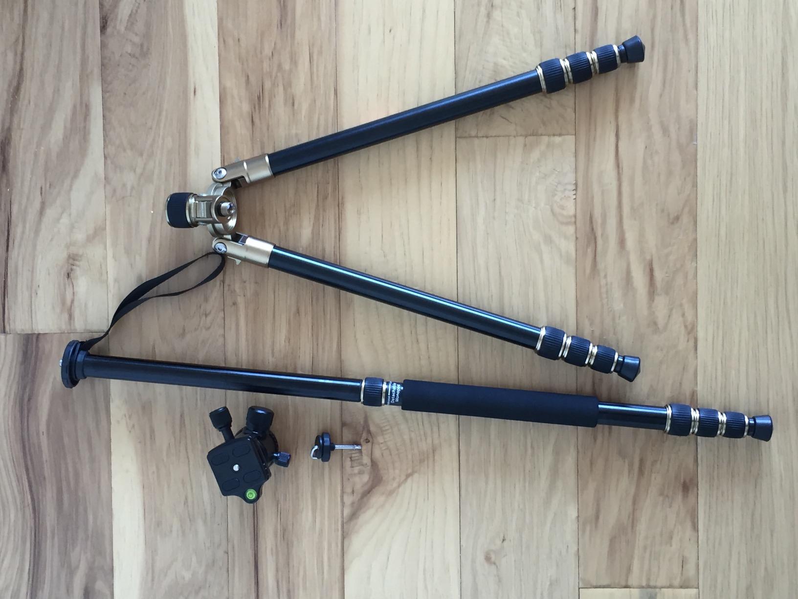 awesome tripos. save hundreds of dollars of the manfrotto equivalent and get this instead. it solidly secures my canon 5d mk III and my tamron 150-600. foam grip is very comfy and the monopod is easy to detach. also the markers for taking panorama photos are very precise and the plate is easily secured to the ball head. overall very nice contraption.