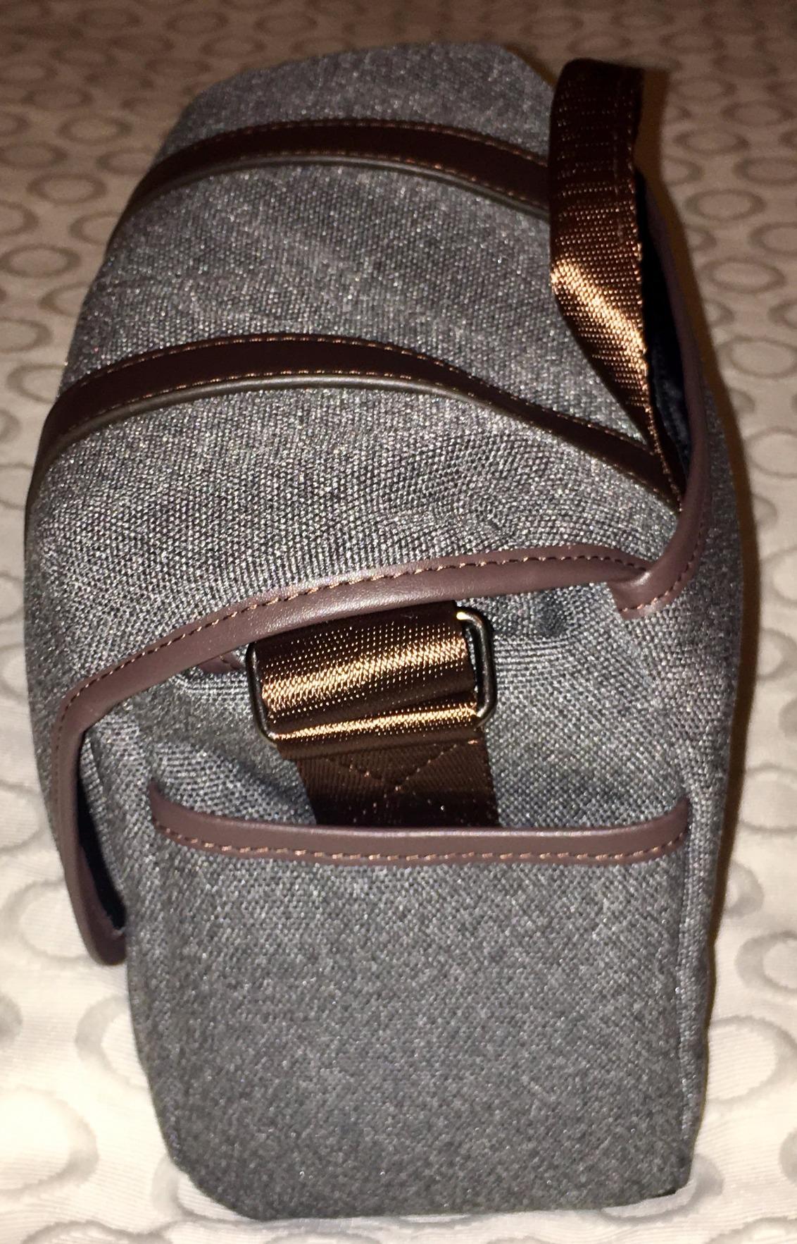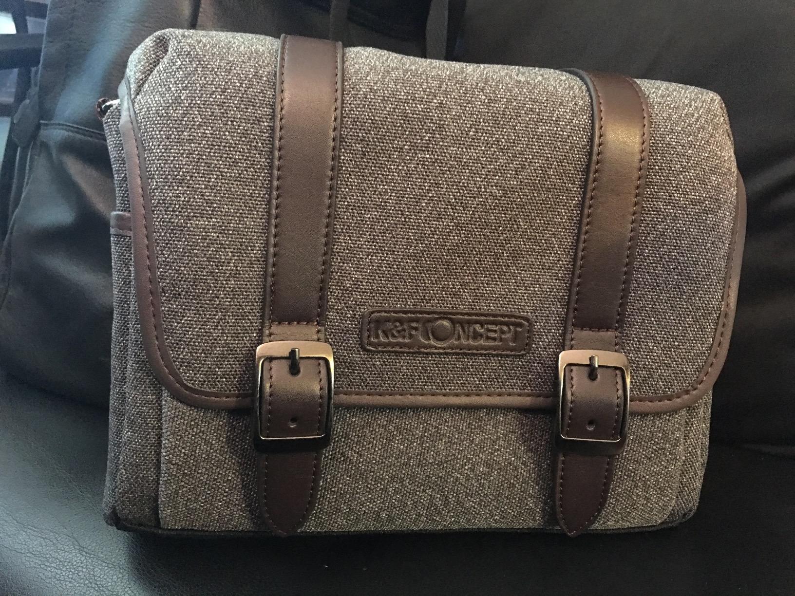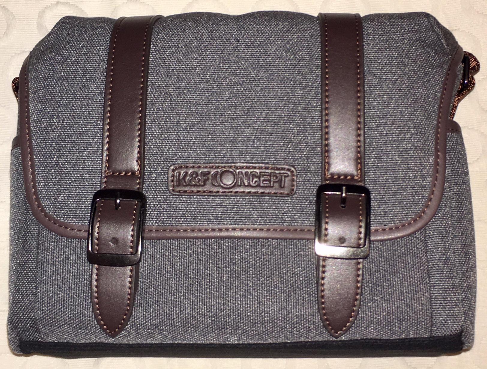 Executive summary: I would classify this bag as a true medium-sized camera shoulder bag. It can hold an additional large lens compared to my current, beloved Evecase compact medium shoulder bag; however, my current bag has lots of closed exterior pockets which this K&F bag does not have. However, this K&F bag has many internal pockets. Overall, this bag does a good job of blending style, functionality, comfort, and usage of space. The construction quality and durability seem excellent, indicating a long expected lifespan for the bag. Continue reading for my more detailed review.Verbal-unboxing: The bag arrived in plastic packaging and in excellent condition. Also included was a comfortable, padded shoulder strap. Further, a kit was included with various lens cleaning utilities including a packet of lens cleaning tissue paper, a microfibre lens cleaning fabric, a squeeze-blower to blow dirt from the lens, a lens cleaning brush with built-in charcoal lens cleaner, and a small spray container that could be used to carry some lens cleaning solution. The pictures in the item description are accurate.Pros:+ Design. For the most part, the bag exterior is made of grey nylon with brown faux leather at various stitch points. The buckles are made of polished metal, and fit in nicely with the brown straps as well as with the rest of the bag. One of my favourite aspects of the bag is that the two front buckles magnetically slot into place, facilitating closure. The shoulder strap is comfortable and connects to rectangular metal rings on either end of the bag. While there is a top nylon handle at the back for lifting and hanging the bag, practically-speaking, the shoulder strap must be used for transport. The shoulder strap is not detachable. Just underneath where the shoulder strap attaches on either end, there is a slim, open exterior pocket. Further, there is a large, open, exterior pocket that extends the length and depth of the bag, just behind the top handle. I only recommend storing items in the latter pocket in dry weather. Underneath the top cover is a second cover that folds open and closes magnetically. There is also an open, interior pocket, that itself houses smaller pockets, including a zipper pocket. The very interior of the bag is very well padded, with about half an inch of firm padding all the way around. Due to the thickness of the padding, the size of the bag does not vary greatly between being empty and full. Overall, the bag is elegant and classy.+ Interior compartments. Included are two padded and adjustable compartment dividers, each comprising about half an inch of padding and measuring 11.5 cm (4 1/2") high. The dividers are fastened to the internal sides of the bag by velcro, and are thus adjustable. In addition to the three compartments formed by the two dividers is a small, open, fixed pocket at either end of the bag. At the back is a slim compartment large enough to fit a small 8" long tablet (e.g., iPad Mini fits perfectly).+ Fit. Realistically, I can fit about two long lenses/flashes (one of which is attached to the body), one short/medium lens, a single DSLR camera body, and an iPad Mini, with little room to spare in the main internal compartment. The included mesh kit would not fit in the bag with the above kit.+ Style. I very much like the colour scheme. The woven grey exterior looks great and professional, mostly in an urban setting. The interior is black, and while stylish, it makes it difficult to distinguish the bag from most camera parts (which are often black).+ Waterproof. Nylon in general is a good water-resistant fabric. The bottom of the bag is reinforced, though it does not have any metal feet to keep the bag off the ground, which would have been useful to keep moisture from creeping in from the bottom. All that being said, the affixed cleaning label indicates that the bag is meant to be kept away from moisture; I only hope that this is not an indication of a compromised ability to repel water.Cons:- Open exterior pockets. I am concerned about the three open, exterior pockets. During inclement weather, these pockets are somewhat exposed to the elements. In particular, the large pocket on the back that extends the full length of the bag is bound to accumulate water should it start to rain/snow.Neutral:o Cleaning. The bag cannot be put in the wash for obvious reasons, and must therefore be handwashed should anything ever stain its appearance.o Specifications:Dimensions (measured when closed): approx. 28 cm (11") x 17 cm (6 1/2") x 20 cm (8")Dimensions of mesh kit: approx. 17 cm (6 1/2") x 14 cm (5 1/2")Weight: 0.67 kgMaterial: Nylon + PU leatherWaterproof: YesRaincover: Not includedFriendly request: PLEASE click “YES" in the feedback below if this review was in any way helpful to you. I write these reviews to help other consumers — my way of giving back. My reward is you benefiting from my review.
