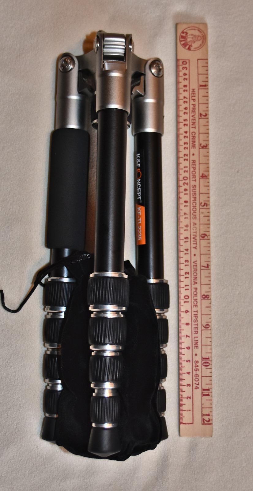 Given that I'm flying to SanFran soon I wanted to get a new tripod under these requirements:1. Compact folded up2. Under $1003. Highest height and quality and load-bearing that higher priorities allowThis K&F Concepts tripod met all 3 requirements! Had considered the Slik Mini II. It has good rep and the leg lock levers I like. But this K&F tripod folds more compactly yet has higher working height. Its made of high quality aluminum alloys. The screw locks have a short turn to confident tightening. The actual working height at the locking clamp is 51". Folded up for travelling its just 12.5 inches. The ball head feels solid and I have no concerns with a 5lb DLSR loaded. The Clamp works find with my Peak Designs arca plate (that I keep on DSLR all the time). Now I can fit everything into my into my LowePro sling pack for my trip. Highly recommended.