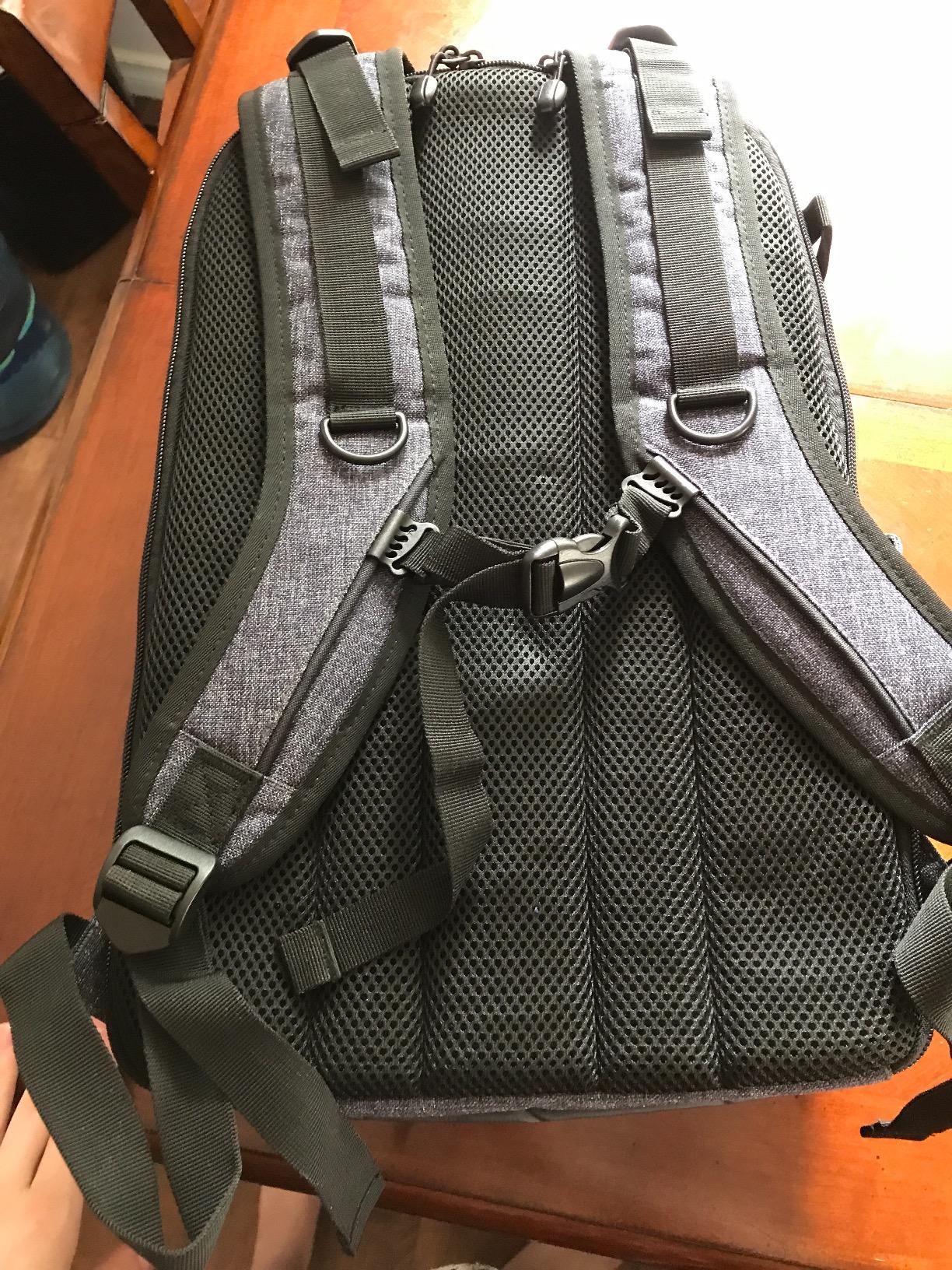 I purchased this bag for myself. I used to have a shoulder bag, but after carrying my stuff for ages.... I have real pain in my shoulder and back. I needed to find an enough big backpack. It has two parts: the front one is for the laptop and tablet, cables; the back is for camera and lenses and accessories. You can make different sizes of comparements with padded dividers. You can attach them to each other by Velcro. The straps are adjustable, padded, very comfortable to wear. The whole back is breathable, mesh, even if you are sweating, does not feel yourself uncomfortable.I have two issues with this backpack: the material does not seem enough waterproof (should have a foldable rainproof cover) and not enough deep. If I put my laptop in one side and want to put my wide angle lens, I think is not enough deep.The inside is very soft, padded, I know all my lenses and other accessories are in safe.