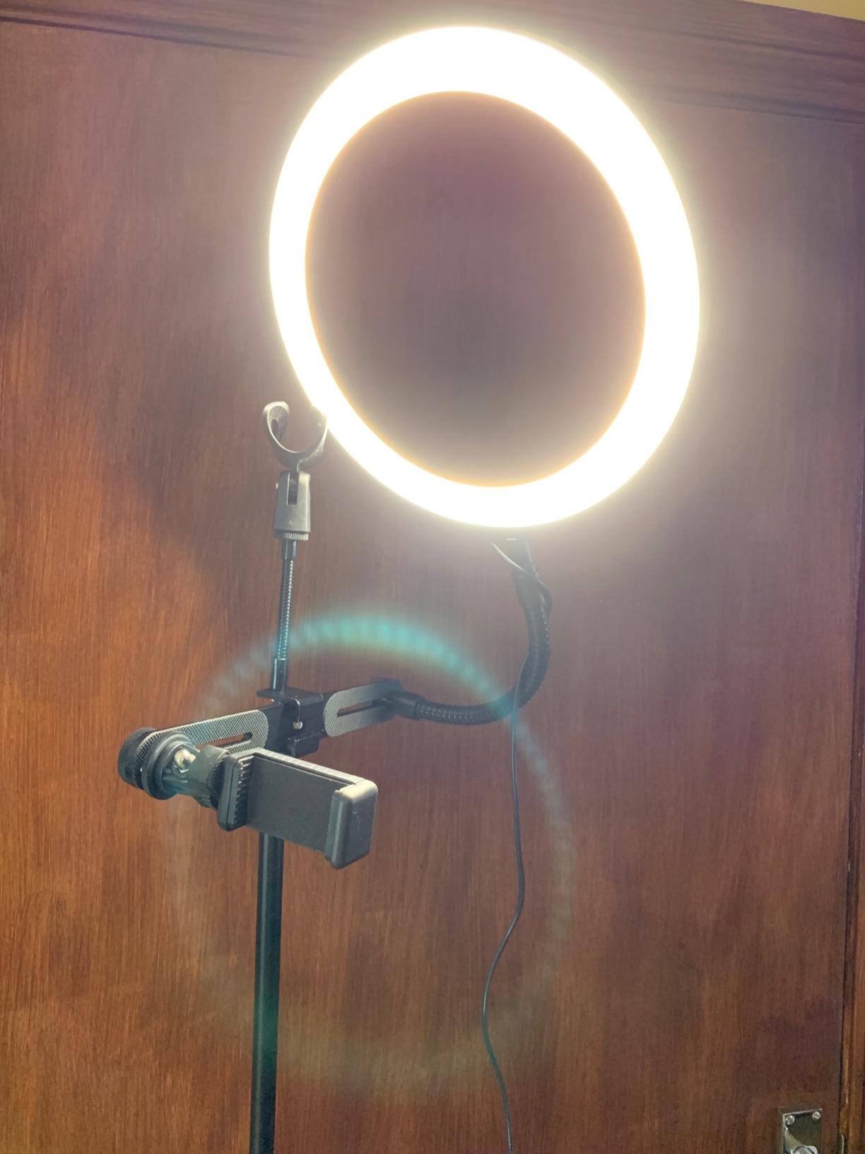 Being able to use the 3 lights without having to change bulbs or covers has helped me a lot in my work. The base provides very good stability. There are several heads to adapt the mobile phone and the adapter for the microphone has been a success. Totally recommendable.