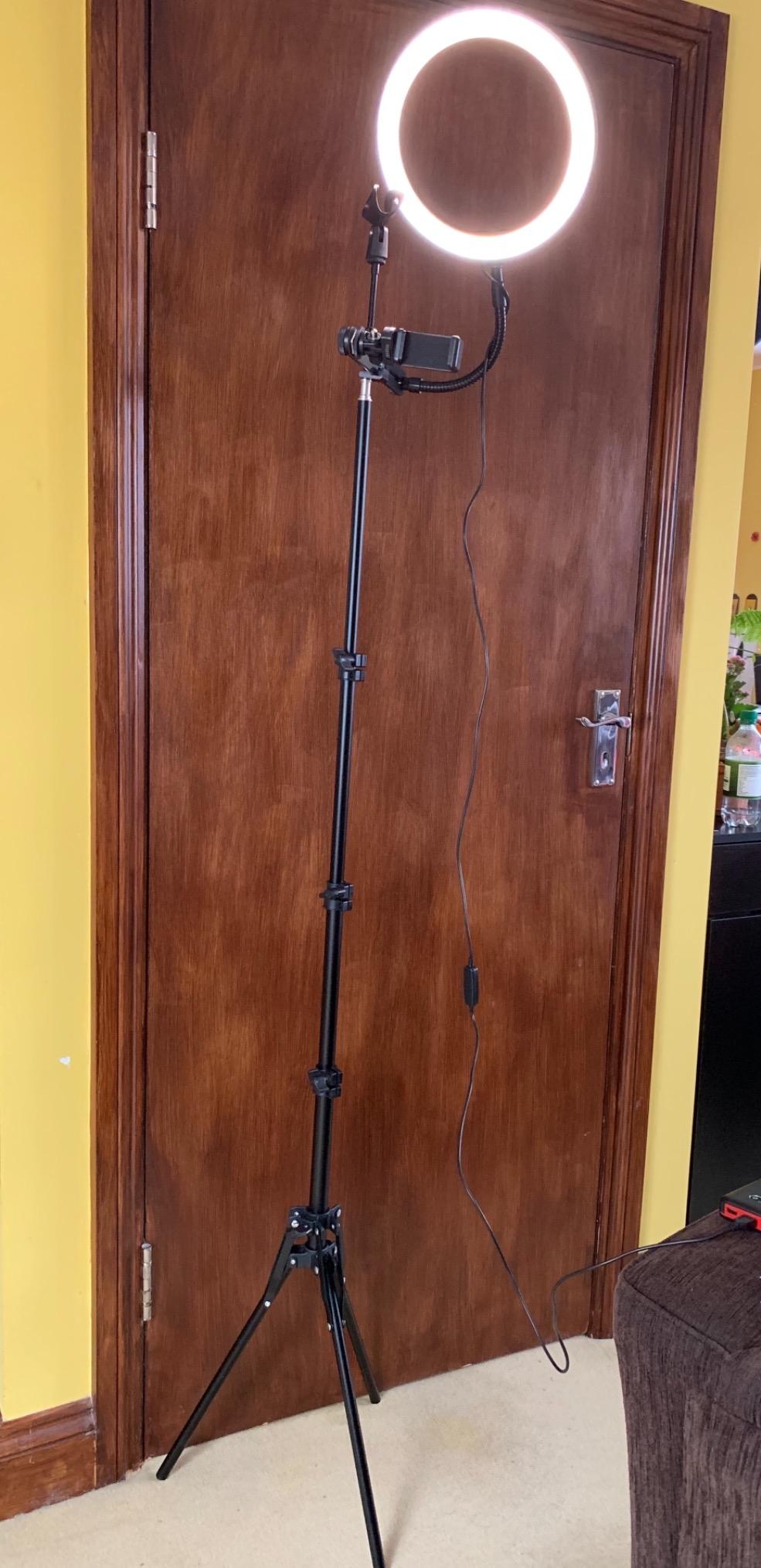 have other tripods with ring light from more famous brands paid much more but I have to say that this tripod with ring light does its job. First of all once assembled it can exceed two meters in height then it has three connections for two cell phones and a microphone. It has three versions of lighting, warm, cold and both and a jointed arm that allows you to adapt it to any position. A good product at a very competitive price.